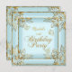 Elegant Pretty Blue Gold Birthday Party Invitation
