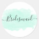Elegant pretty chick mint watercolor bridesmaid classic round sticker