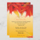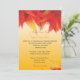 Elegant, pretty fall wedding invitations from bride and groom. Fall red maple leaves in yellow background.