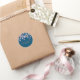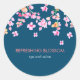 Chic elegant pretty pink blossom classic round sticker featuring pretty pink cherry blossom on a blue background with blush pink and white text for you to personalise with your own name(s) or messsage. Ideal for branding, packaging or as favour stickers for promotional purposes.