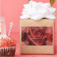 Make a lasting impression with this elegant and modern product label design featuring a red rose blossom with pretty palm leaves and sparkling faux glitter stars.