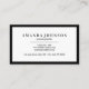Simple and professional business cards featuring your name and title or occupation in the lower right corner, framed by a chic black border. Add your contact information to the reverse side.
