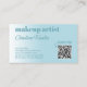 Beautiful elegant minimalist style artistic makeup artist business card. Contemporary light ocean blue coloured business card with a modern retro and minimalist aqua seafoam teal and sophisticated classy white font. Click on 'Personalise' to find the template ready to be customised with your unique business name, profession and contact information, text and QR code of your choice. This particular pretty and unique design was made for those who like sophisticated classic strong designs.
