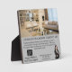 Minimal and simple marketing Tabletop Plaque with Easel for every realtor and real estate agent. The text and images can be personalised. Add your contact data and company logo, a QR code or other relevant information to this real estate agency promotional product.