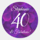 Elegant Purple 40 and Fabulous Birthday Favour Classic Round Sticker