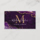 Elegant Purple Agate Gold Glitter Script Monogram Business Card
