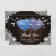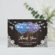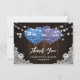 Thank your guest for sharing in your special day with this romantic purple and blue floral wedding thank you card featuring floral hearts, elegant lace and string lights on a barn wood background.