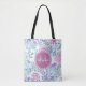 An elegant pastel purple and blue succulent floral pattern tote bag. You can personalise the spring orchid hexagon badge by adding your name and monogrammed initial. This is part of the Spring Orchid Succulents Monogrammed Floral Collection.