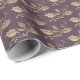 Elegant purple and gold Christmas wrapping paper featuring gold holly and berries on a purple background.