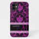 Elegant Purple & Black Damask with monogram Case-Mate iPhone Case