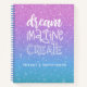 A beautiful purple and blue faux glitter personalised 8.5 x 11 sketchbook. The words, "DREAM IMAGINE CREATE" in a hand drawn font personalised with your name below. Customise the sketchbook with the name of your choice to make someone feel extra special. Makes a fun gift for birthdays or for Christmas. Comes in a variety of colours. Designed for you by Blackberry Boulevard.