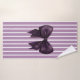 Embrace timeless style with this elegant bathroom set, showcasing a beautiful deep purple bow centered on a backdrop of bold vertical stripes. The soothing lavender and white stripes provide a clean, classic foundation, while the detailed bow adds a focal point of rich color and texture. This set is designed to offer both exceptional comfort and decorative appeal, making your bathroom a more inviting and stylish place.