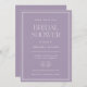 This is an elegant, minimalist and modern 5x7 bridal shower invitation. It is a simple and stylish typography design in elegant lavender purple and white for a modern yet feminine look. Please contact the designer for any queries about this design.