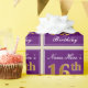 This simple and elegant wrapping paper design features a personalised message like "Name-Here’s 16th Birthday" (with the "16th" having a faux/imitation gold-like colouring look) within a purple-coloured square area featuring a simple border outline. The name is in an elegant white-coloured script-like text, and can be customised. Wrapping paper like this could perhaps be used when wrapping birthday gifts for somebody who is celebrating their sixteenth birthday. [~Z0000220]