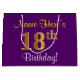 Elegant, Purple, Faux Gold 18th Birthday + Name Large Gift Bag