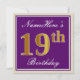 Elegant, Purple, Faux Gold 19th Birthday + Name Invitation