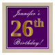 Elegant, Purple, Faux Gold 26th Birthday + Name Poster