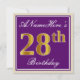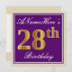 Elegant, Purple, Faux Gold 28th Birthday + Name Invitation
