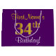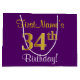Elegant, Purple, Faux Gold 34th Birthday + Name Large Gift Bag