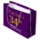 This simple, elegant birthday gift bag design features a personalised message like "FirstName’s 34th Birthday!" (with the "34th" having a faux/imitation gold-like colouring look) on a purple coloured background. The name is in script-like, yellow-coloured text, and can be personalised. A personalised birthday themed gift bag like this could perhaps be used when giving a present or gift to somebody who is celebrating their thirty fourth birthday. [~Z0000255]