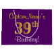 Elegant, Purple, Faux Gold 39th Birthday + Name Large Gift Bag