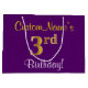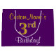 Elegant, Purple, Faux Gold 3rd Birthday + Name Large Gift Bag