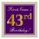 Elegant, Purple, Faux Gold 43rd Birthday + Name Poster
