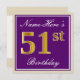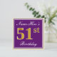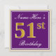 Elegant, Purple, Faux Gold 51st Birthday + Name Invitation