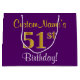 Elegant, Purple, Faux Gold 51st Birthday + Name Large Gift Bag