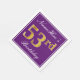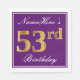 This simple and elegant paper napkin design features a message like "NameHere’s 53rd Birthday" (with the "53rd" having a faux gold-like colouring look) within a purple-coloured square area featuring a simple border outline. The name is in a white-coloured script-like text, and can be personalised. Napkins like these could perhaps be used at a birthday party for somebody who is celebrating their fifty third birthday. [~Z0000140]