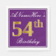 This simple and elegant paper napkin design features a message like "ANameHere’s 54th Birthday" (with the "54th" having a faux gold-like colouring look) within a purple-coloured square area featuring a simple border outline. The name is in a white-coloured script-like text, and can be customised. Napkins like these could perhaps be used at a birthday party for somebody who is celebrating their fifty fourth birthday. [~Z0000140]