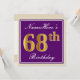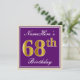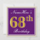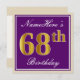 Elegant, Purple, Faux Gold 68th Birthday + Name Invitation