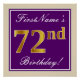 Elegant, Purple, Faux Gold 72nd Birthday + Name Poster