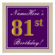 Elegant, Purple, Faux Gold 81st Birthday + Name Poster