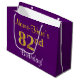 This simple, elegant birthday gift bag design features a personalised message like "Name-Here’s 82nd Birthday!" (with the "82nd" having a faux/imitation gold-like colouring look) on a purple coloured background. The name is in script-like, yellow-coloured text, and can be personalised. A personalised birthday themed gift bag like this could perhaps be used when giving a present or gift to somebody who is celebrating their eighty second birthday. [~Z0000255]