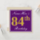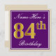 Elegant, Purple, Faux Gold 84th Birthday + Name Invitation