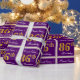 This simple and elegant wrapping paper design features a personalised message like "FirstName’s 86th Birthday" (with the "86th" having a faux/imitation gold-like colouring look) within a purple-coloured square area featuring a simple border outline. The name is in an elegant white-coloured script-like text, and can be personalised. Wrapping paper like this could perhaps be used when wrapping birthday gifts for somebody who is celebrating their eighty sixth birthday. [~Z0000220]