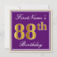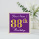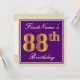Elegant, Purple, Faux Gold 88th Birthday + Name Invitation