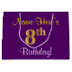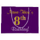 Elegant, Purple, Faux Gold 8th Birthday + Name Large Gift Bag