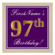 Elegant, Purple, Faux Gold 97th Birthday + Name Poster
