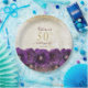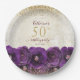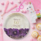 Elegant Purple Floral Gold 50th Birthday Party Paper Plate