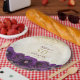 These elegant floral 50th birthday party paper plates feature purple watercolor roses with a name and date to personalize in modern script calligraphy. Designed by Susan Coffey.