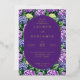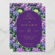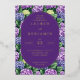 This elegant wedding invitation features a lush floral design with vibrant purple and green hydrangeas, creating an enchanting garden-inspired theme. The oval layout is framed by richly colored blooms, adding a touch of sophistication to the overall look. The typography is classic and refined, complementing the romantic and celebratory mood of the occasion. Perfect for couples who dream of a picturesque and memorable wedding day, this design captures the essence of love and nature in harmony. Personalize it effortlessly to make your special moment even more unique.