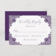 Elegant Purple Floral Lace Burlap Hearts Wedding RSVP Card