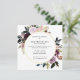 An elegant double gold ring frame surrounds your Thanksgiving Dinner information. This stunning DIY invitation template features large mauve pink roses accented with deep purple roses and flowers. The leaves and vines give it a modern botanical vibe. The back of the Thanksgiving Dinner invitation is a deep plum purple watercolor wash. The outline of roses creates an all-over pattern. The deep rich tones make this perfect for an autumn celebration.