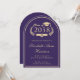 Formal arch-shaped purple college graduation announcement featuring "Class of" in a gold illustration of a laurel wreath, a gold grad cap and diploma, and the graduate's name in an elegant gold script. Add their school, major, honours or future plans in classic gold serif typography.