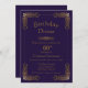 An elegant customisable purple with gold ornate lace 60th birthday dinner invitation.