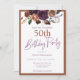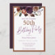 This elegant 50th surprise birthday party invitation is perfect for your special event! This design features beautiful, rich purple, pink and gold flowers. The custom typography is trendy and elegant!