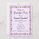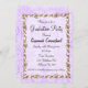An elegant purple graduation party invite with a classy, vintage damask pattern in dark pink and purple. There is also an ornamental golden frame in faux metal around the text.