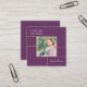 Modern and elegant dark purple and golden yellow geometric grid business card with photo and contact information.